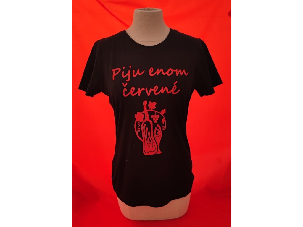 - Design: Tričko je ozdobeno nápisem "Piju enom červené" a doplněno obrázkem, který je aplikován pomocí nažehlovací fólie. Tento design přináší osobitý a vtipný prvek do vašeho šatníku.