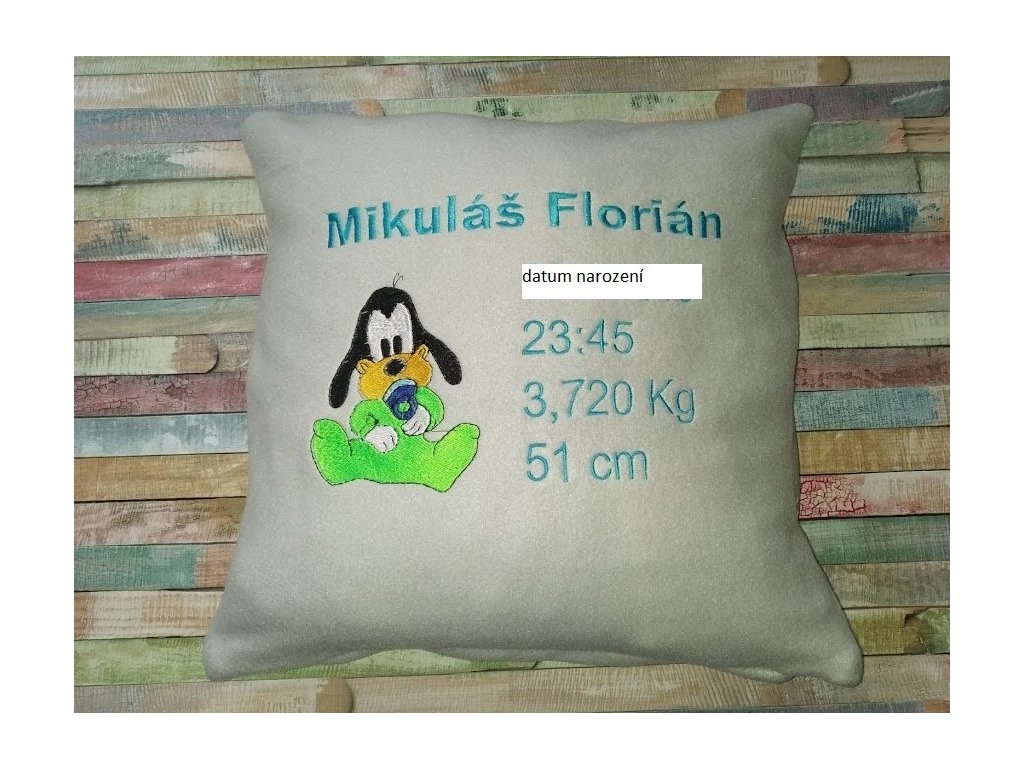 - Personalizace: Na polštářek je možné vyšít prakticky jakýkoliv obrázek a text. Stačí do poznámky k objednávce uvést požadovanou barvu polštářku, obrázek a text.